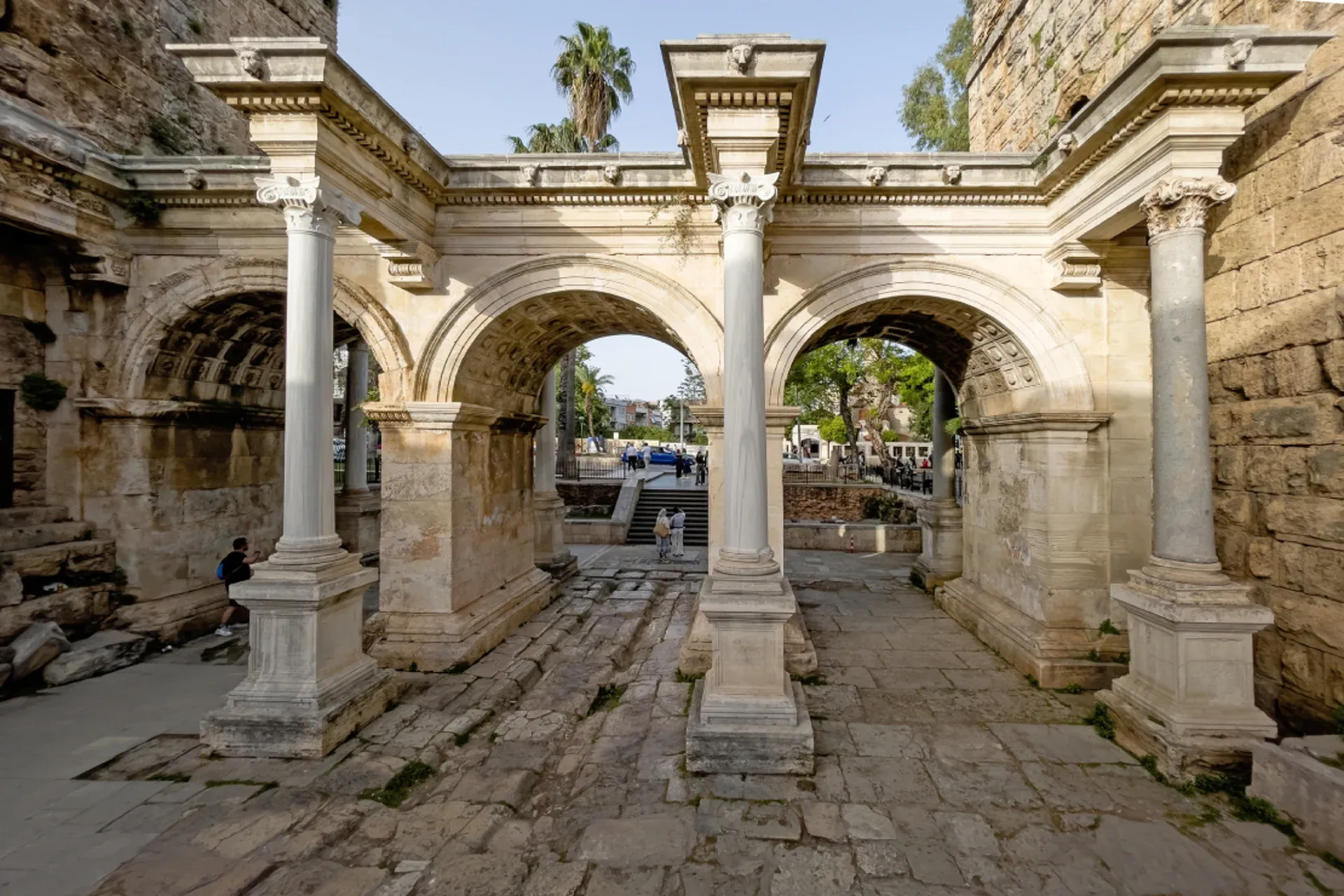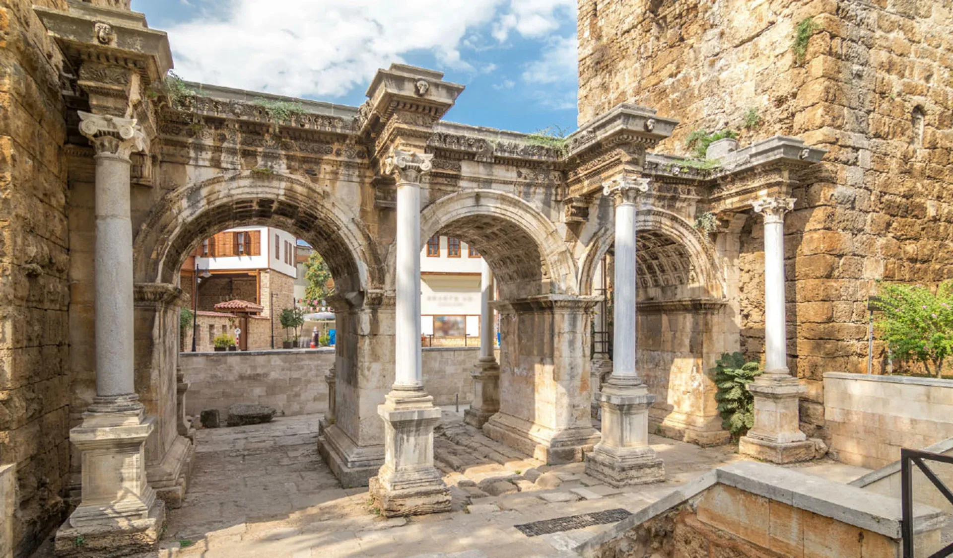 Begin your journey at the magnificent Hadrian’s Gate, built in honor of the Roman Emperor Hadrian’s visit in 130 AD. With its three marble arches and intricate carvings, this is the most impressive entrance to Kaleiçi. As you pass through the gate, take a moment to imagine the ancient processions that once crossed this very threshold.